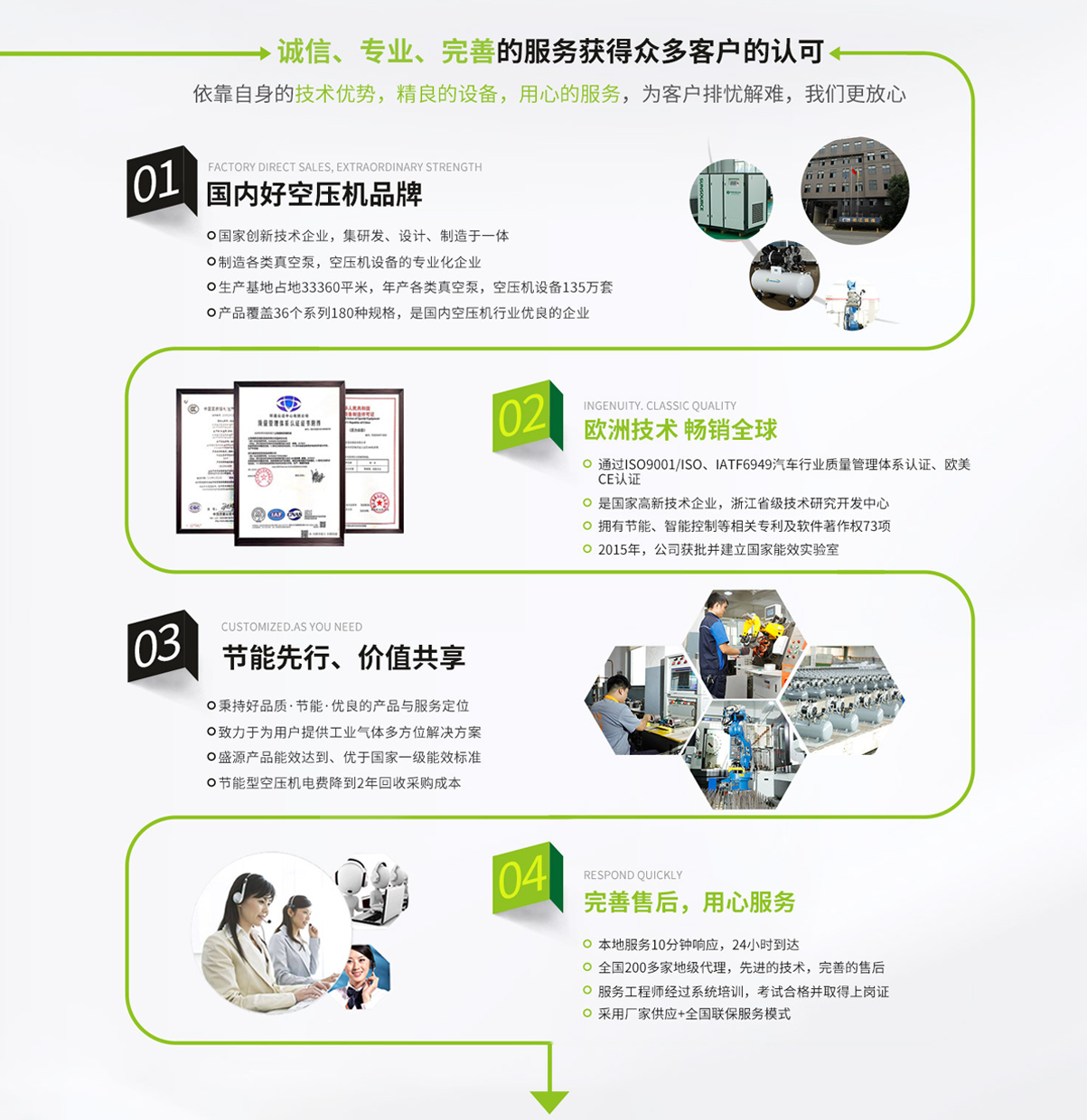 浙江盛源空壓機(jī)制造有限公司是一家研究制造無(wú)油真空泵系列、新能源電動(dòng)空壓機(jī)、空氣壓縮機(jī)設(shè)備、器材、永磁伺服電機(jī)、工業(yè)投資等多元化經(jīng)營(yíng)的大型企業(yè),是國(guó)家高新技術(shù)企業(yè),浙江省級(jí)技術(shù)研究開發(fā)中心。